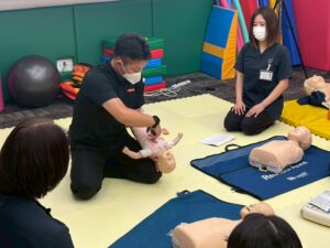 UGOKKOでは、皆さまが安心してレッスンに参加できる環境づくりのため、 スタッフ向けに乳幼児救命救急対応研修を実施しました。