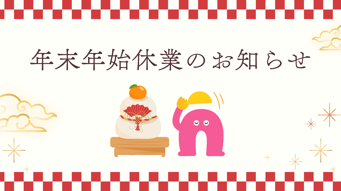 期間中は、お問い合わせ対応をお休みいたしますのでご了承ください。 1月5日(月)より、通常通り再開予定です。